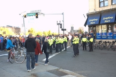 The scene at the Boylston/Tremont intersection was a borderline mosh pit of fans.