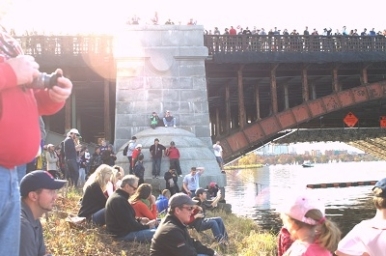 The bridge crowd goes crazy for evey boat that passes underneath.