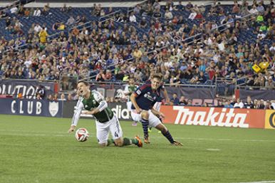Portland had their best chance of the half in the 37th minute when Diego Valeri got behind the Revolution defense and was one-on-one with Bobby Shuttleworth off a beautiful feed form Gaston Fernandez. Valeri was able to sneak the ball past Shuttleworth but it rolled just wide of an open net.