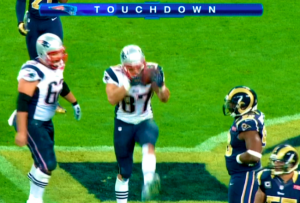 -Rob Gronkowski’s first touchdown celebration where he paid homage to the Buckingham Palace Guard was classic! His second touchdown celebration? Not so much.
