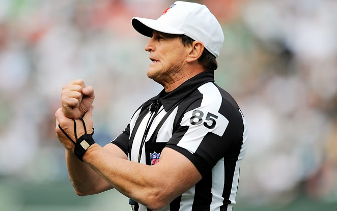-Not that it effected the outcome of the game, but Ed “Muscles” Hochuli and his crew didn’t exactly have a great game Sunday night.