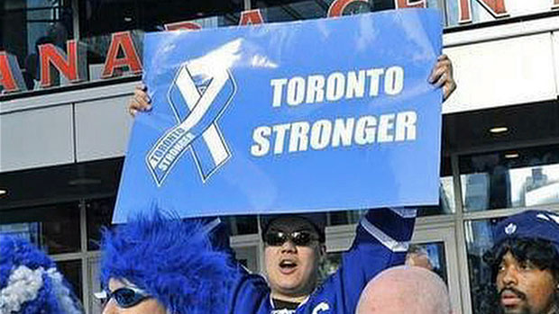 -How about the nitwit Maple Leafs fan who held up the “Toronto Stronger” sign at the Air Canada Centre Monday night? I’m all about supporting the home team, but does that moron not know what “Boston Strong” symbolizes? What a dolt!