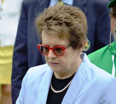 The Induction ceremony was headed off with a presentation of the Hall of Fame ring to tennis legend Billie - Jean King. Both Rosie Casals and Owen Davidson celebrated, and honored their friend and doubles partner, Billie Jean. King was inducted in 1987 but, at the time, the Hall of Fame did not have rings, so Saturday the mother of modern tennis received her very own, before a thankful crowd. Rosie Casals and Owen Davidson did the honors.
